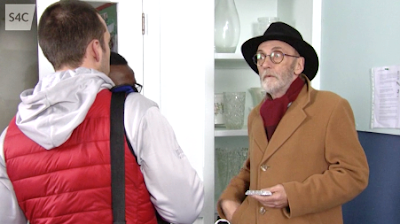 Iolo is listening to Ffion’s app in the Deri, but Kath removes his earphones; “We don’t want you falling asleep like Dai Ashurst!” she says. He remarks that the app makes a lot of sense, and Kath agrees she will listen to it over her Horlicks tonight.
