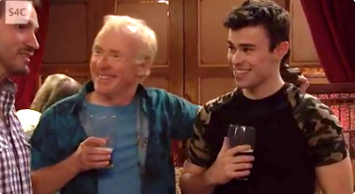 Iolo and Tyler, with Siôn, arrive, and congratulate Izzy;