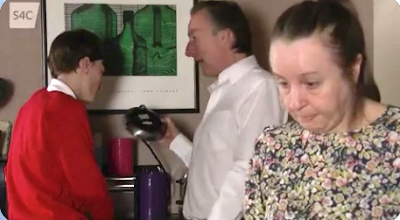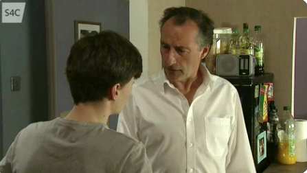 Ffion comes in, and finds that Hywel has managed to hobble as far as the Deri; she asks him, “Did you see the doctor?”