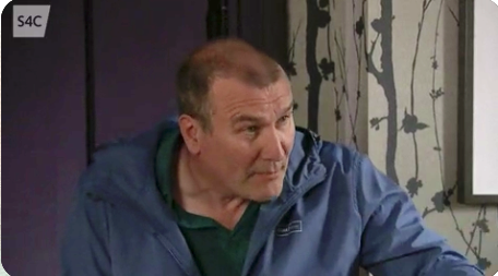 Hywel comes in, and Rhys tells him he is still free to take him to the hospital this afternoon; “It’s natural that you’re upset – you’re going through a lot, with what has happened to Angela as well, but don’t take out your grief on Ffion and me!”
