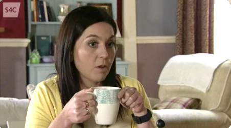 Ffion has noticed Aaron eavesdropping, and suggests, “There are things you can put on the phones to track them . . . aren’t there, Aaron? Would you put an app on your phone so your Mam knows where you are?”