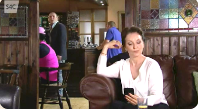 Hywel comes in, and notices Lisa, so he naturally goes across to her;