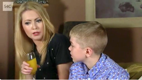 “He’s not here, obviously, “Kelly replies, “He’s staying with Mam in Merthyr, until Social Services find him a forever home –